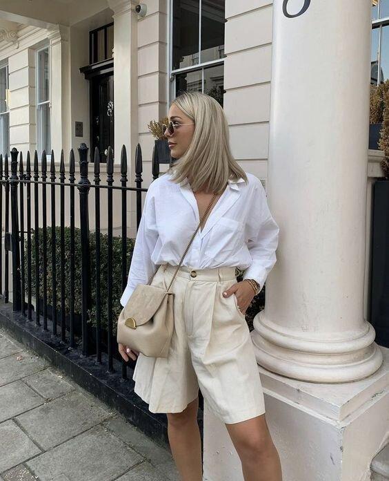 И дело не только в модном стиле old money, но и в комфорте, который обеспечивают классические шорты чуть выше колена. Варианты из лёгких костюмных материалов отлично впишутся в офисный дресс-код и с лёгкостью заменят неудобную юбку-карандаш и длинные брюки.