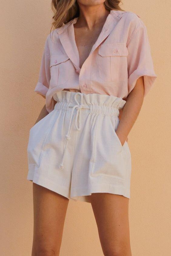 Понимаю, что тяжело отказаться от удобной резинки и шнуровки, которую можно ослабить после плотного обеда. Но модные шорты изо льна хоть и выглядят немного иначе, в комфорте ничуть не уступают.