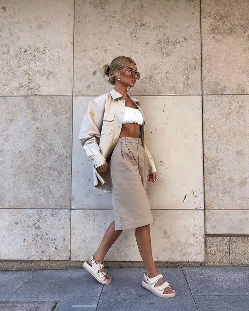 Другое дело — бермуды. Это универсальная модель, которую можно использовать в самых разных аутфитах — от повседневных до офисных и парадно-выходных. Всё зависит от материала, из которого они изготовлены, и аксессуаров, которые дополнят итоговый образ.