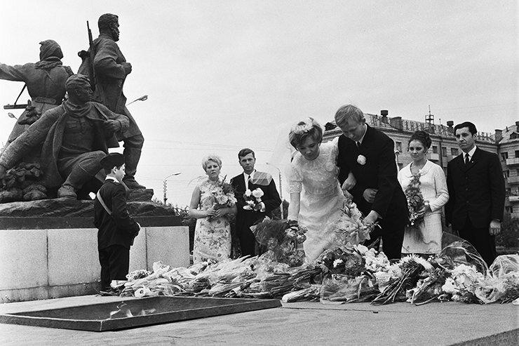 Этот обычай вовсе не странный, но точно удивительный: такого не было нигде в мире, кроме СССР, и теперь — России. Эта традиция зародилась в послевоенные годы: в то время в брак вступали люди, пережившие войну взрослыми, и цветы, которые они возлагали к памятникам и мемориалам, были данью уважения воинам, благодаря которым страна победила и счастливые свадьбы стали возможны. А затем традиция и вовсе превратилась в настоящее шествие: молодожены и их гости объезжали все памятные места города и везде возлагали букеты. Очень многие пары делают это и сейчас.