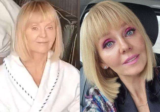 Валерия натуральная блондинка, поэтому неяркая внешность — это естественно для нее. Бледности еще добавил тональный крем, который без полного макияжа всегда смотрится плохо на лице. В целом для возраста за 50 лицо Валерии выглядит очень и очень достойно.