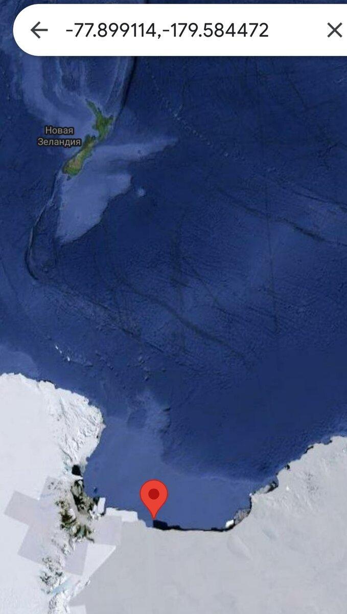 Авторы статей и ролика на Ютюб (смотрите здесь) утверждают, что «стена» начинается практически от берегов Антарктиды. Я нашла это место и просмотрела все вдоль всего объекта с Южного ее конца до Северного. Я отметила начало объекта.