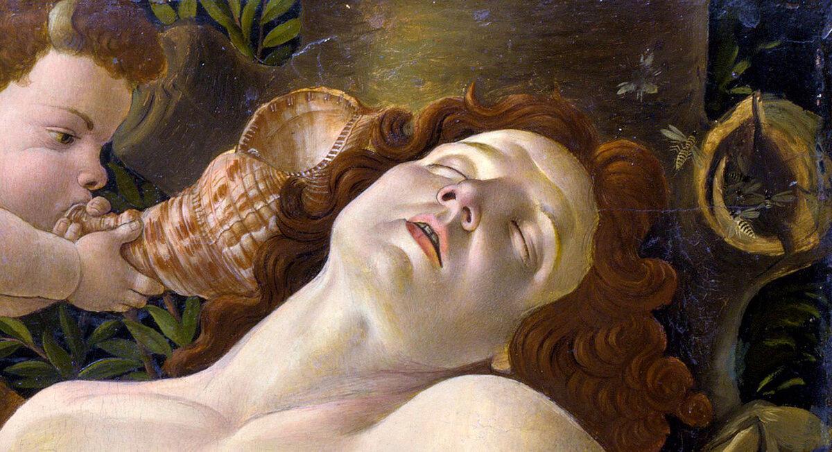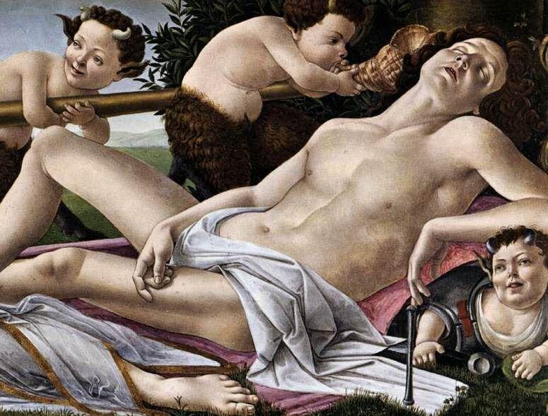 Боттичелли оставляет отсылку к стихотворению Полициано, наставника детей Медичи. В одном из его творений он описывает козлоногих сатиров, спутников пастуха. Тот обитал в похожем на сон месте любви и наслаждения. Таким образом, Боттичелли органично сплетает образы из античных текстов и современной ему культуры.