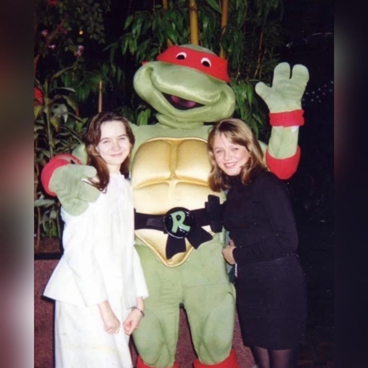 На другом снимке – молодая Юлия Началова с подругой, в компании любимого героя многих детей – Рафаэля из «Черепашек-ниндзя».