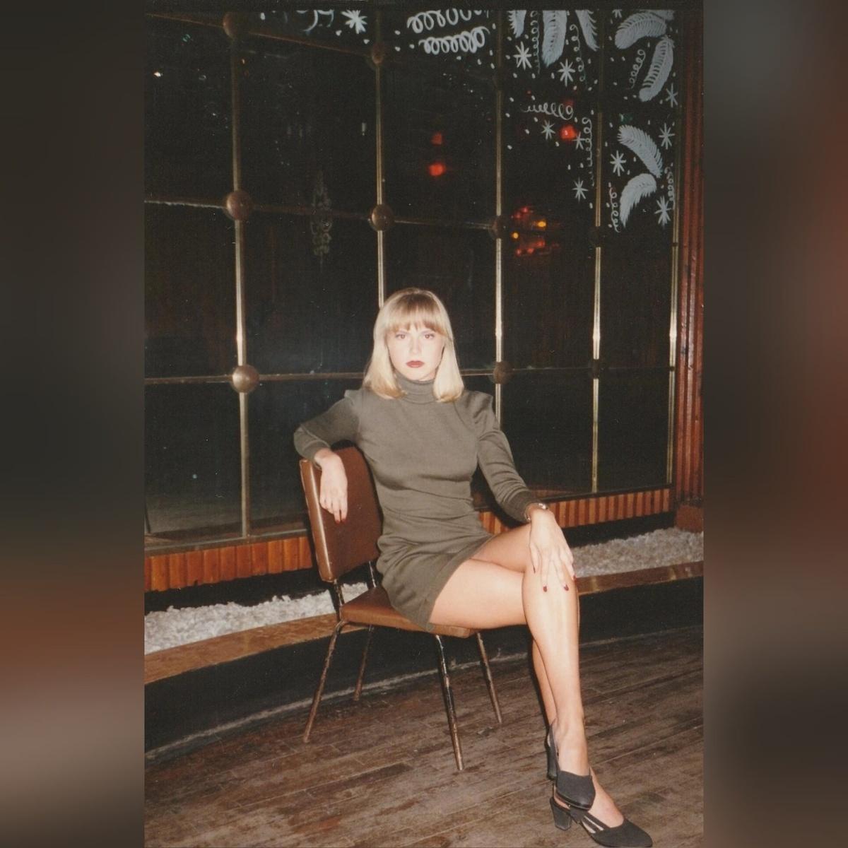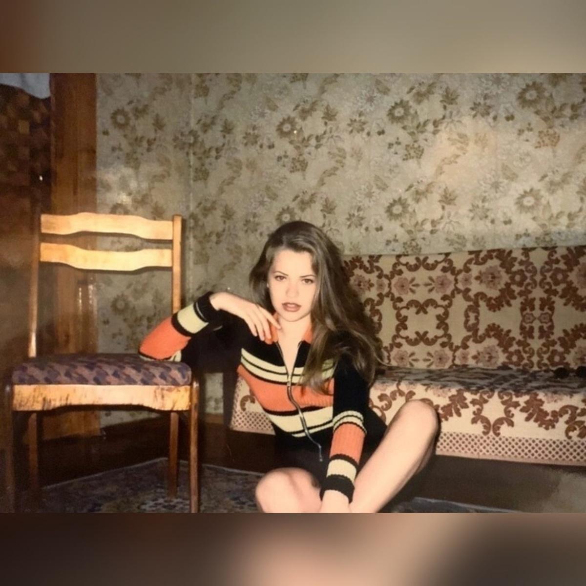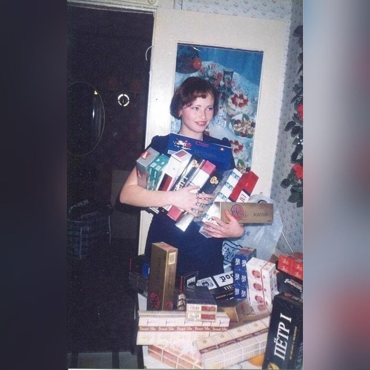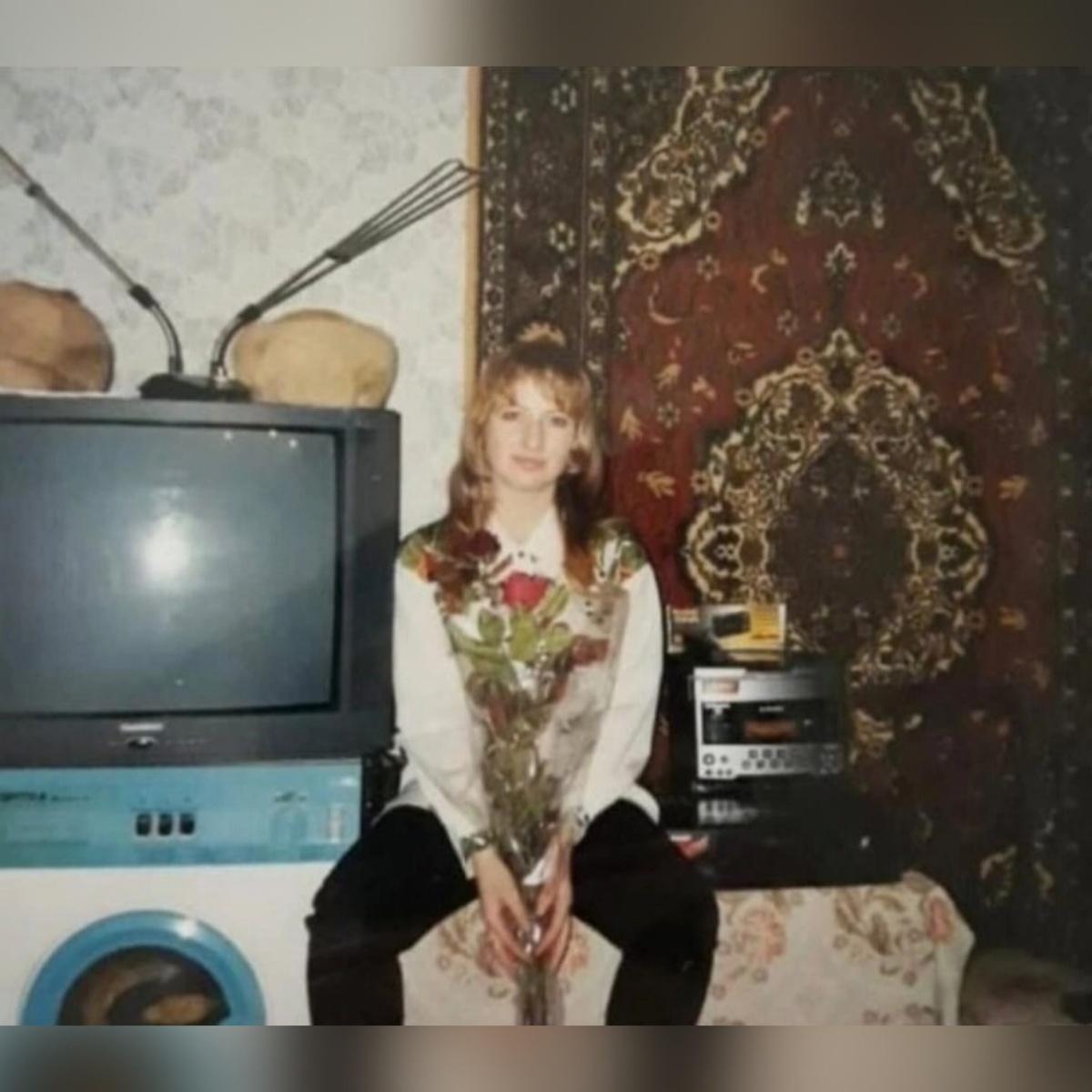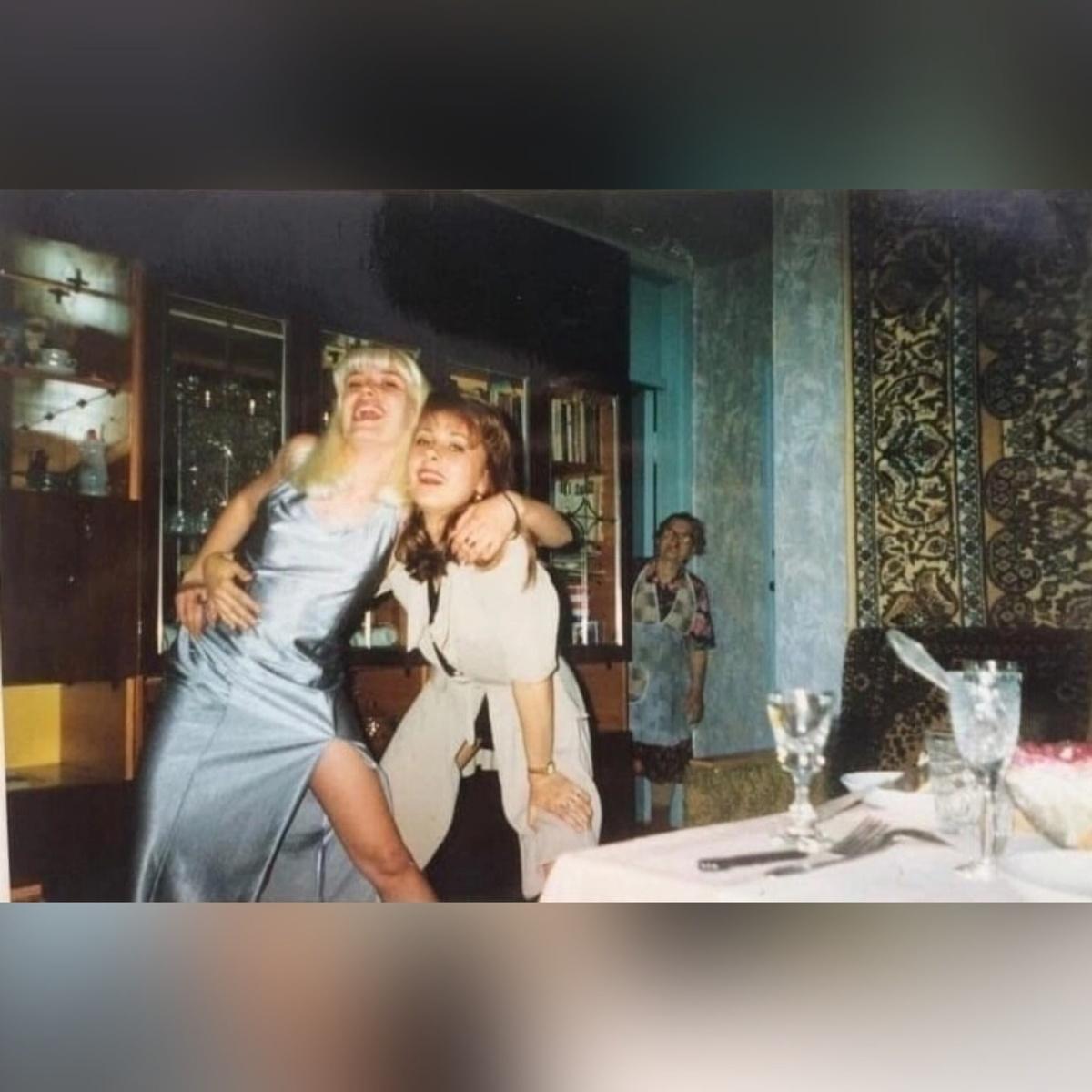 Фотография, пропитанная атмосферой 90-х годов, завораживает своей способностью перенести нас в то время. На ней изображена привлекательная молодая женщина, излучающая уверенность и шарм, словно львица, на фоне типичного для того времени интерьера.