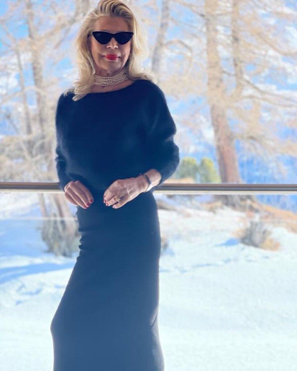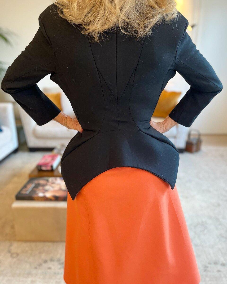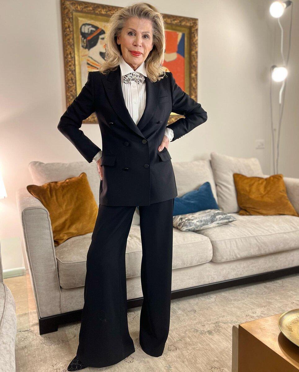 Нельзя сказать, что чёрный цвет — лучшее, что можно придумать для возрастной женщины. Но ей он идёт и модница-архитектор этим пользуется.