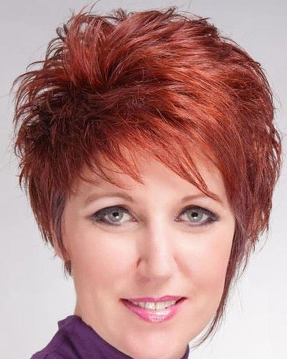 Короткая стрижка с небольшим удлинением прядей на макушке и затылке. Такая прическа хорошо будет смотреться после укладки. Так что при выборе такого варианта нужно быть готовой укладывать пряди каждый день. Впрочем, укладка не слишком сложная, и можно научиться делать её довольно быстро.